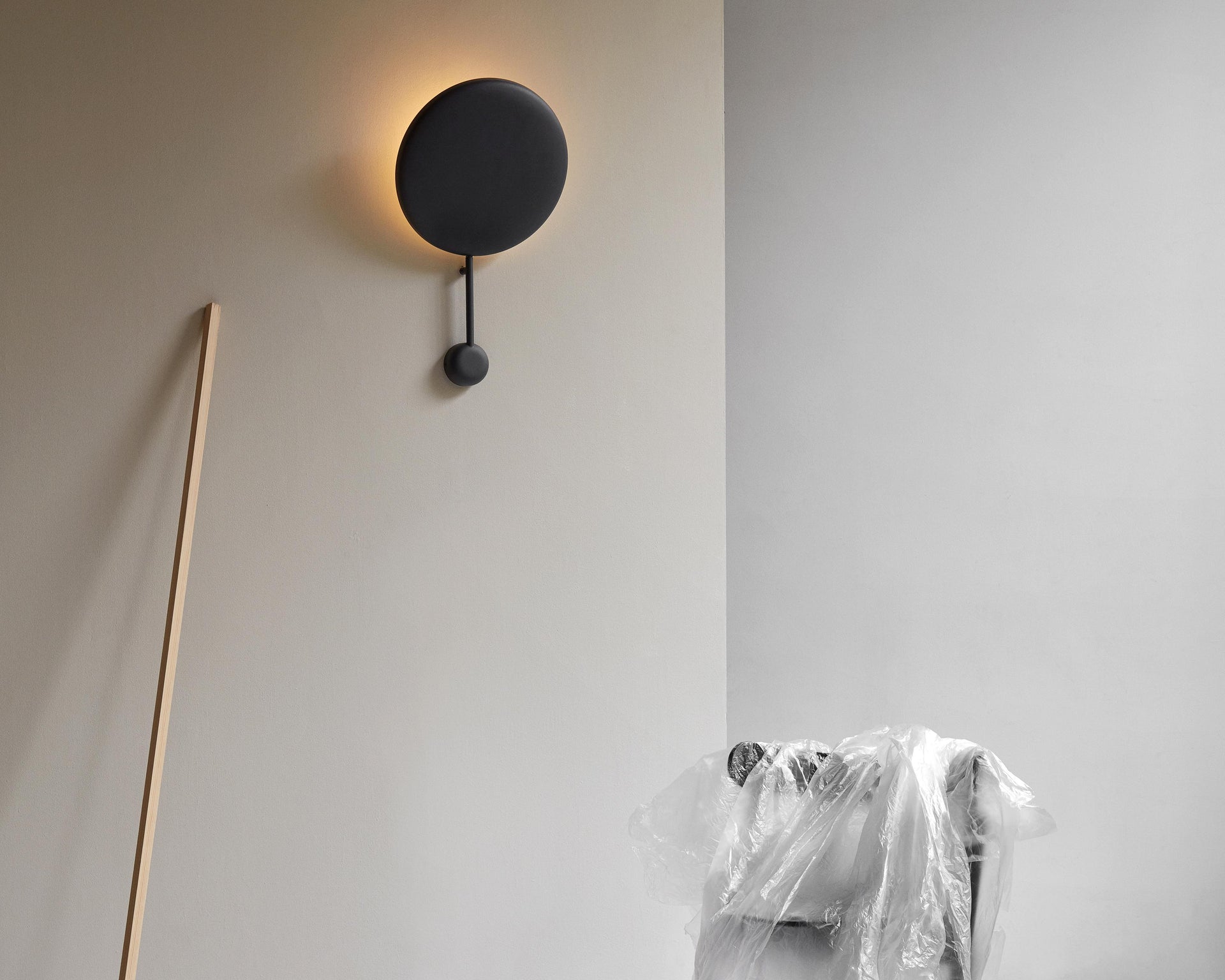 SEKLike a drop of jet-black ink falling onto a crisp white page, the bold silhouette of the Ink wall lamp creates strong contrasts. All parts have been coloured in matt black and arranged around an adjustable, concave shade that reflects light directly onto the wall. As light from the integrated LED module emanates beyond the shade’s rim, a subtle halo effect is created, resulting in a shimmering glow seldom seen in artificial lighting.